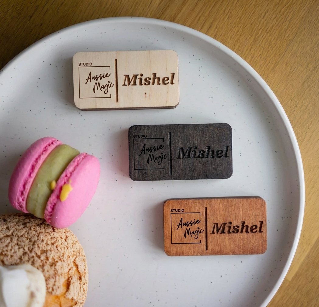 Custom name badges for staff, events and identification, available in acrylic, timber or layered formats. These badges can be kept simple and practical or styled to better match a brand or setting.