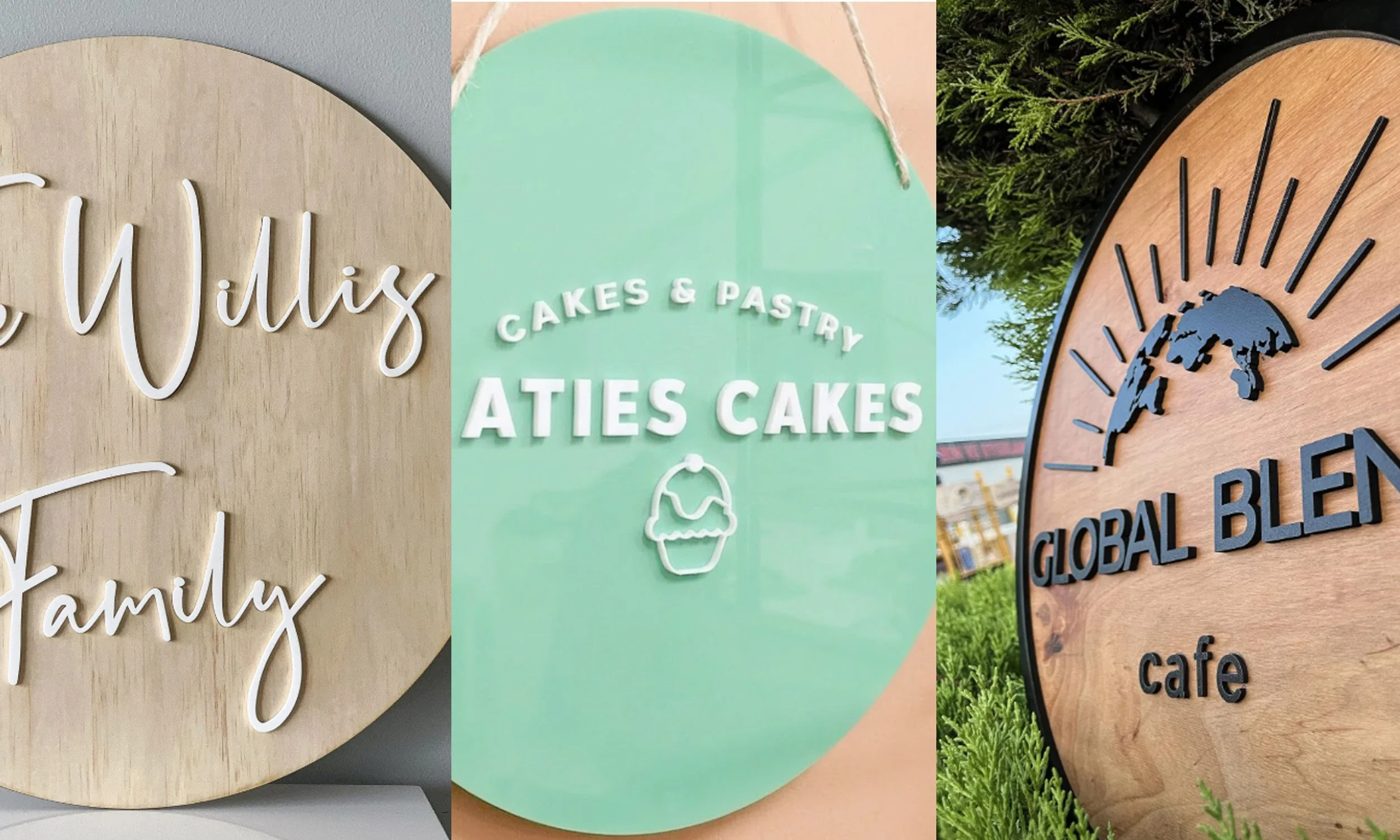 Custom signage in acrylic, timber and mixed materials for homes, businesses, events and display spaces.